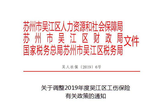 關于調整2019年度吳江區(qū)工傷保險有關政策的通知